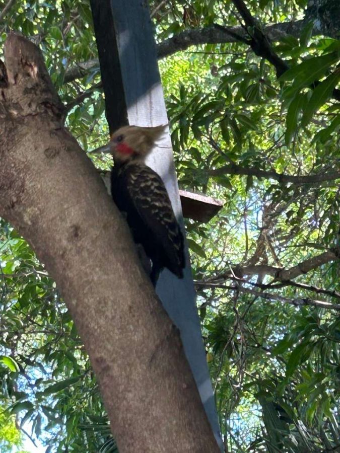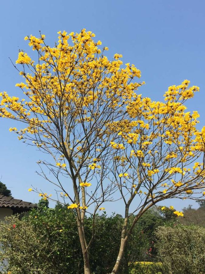 Jardim exuberante: paisagismo renovado com ipês, manacás, flamboyants e até uma castanheira portuguesa que atrai esquilos.