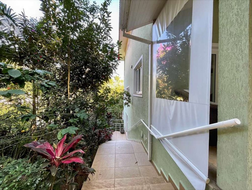 Jardim com lindo paisagismo formado e fundos com mata de preservação permanente.