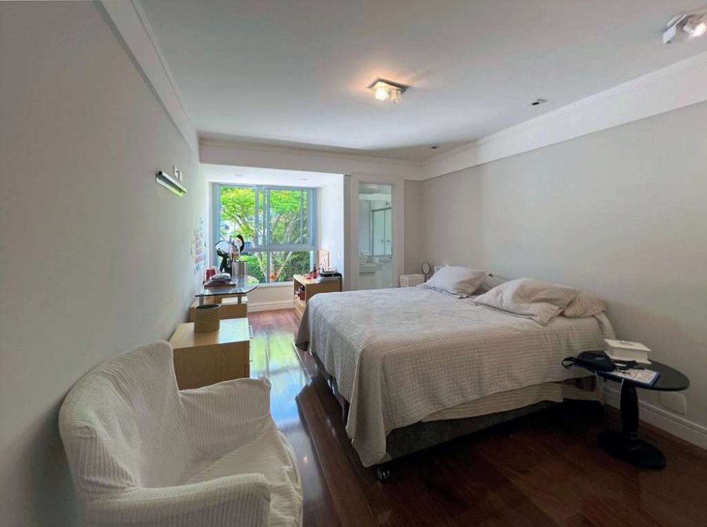 4 suítes, sendo 2 com terraços, guarda corpo de metal, telas mosquiteiro, armários. A master com sala de vestir e porta de correr.